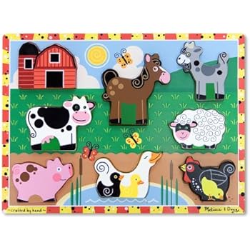 Melissa & doug chunky jigsaw puzzle farm. The melissa & doug farm chunky puzzle features 8 pieces of durable wood farm animals. Includes 7 farm animal pieces and barn. Melissa & doug brings the barnyard to your playroom with this farm magnetic hide & seek set. Melissa & doug wooden chunky puzzles are just right for toddlers and preschoolers!